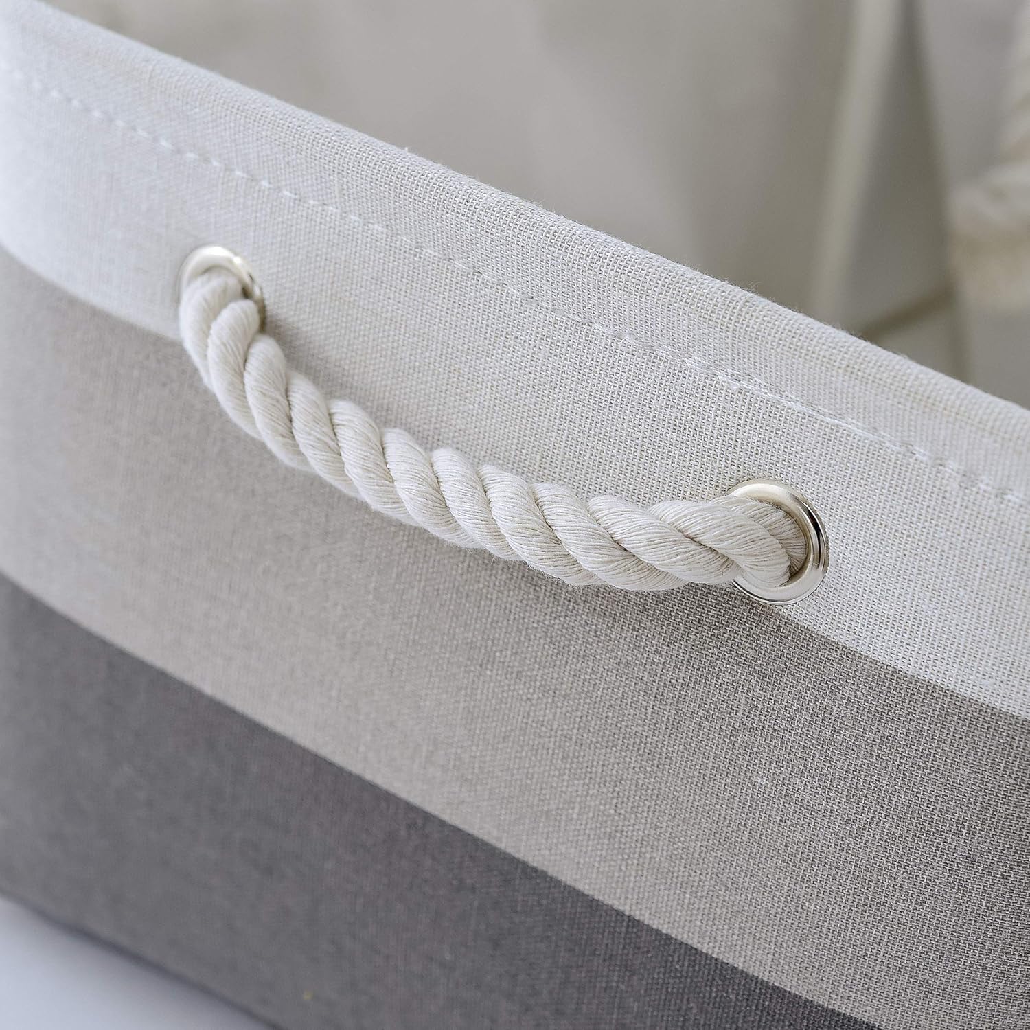 - Fabric Material: Storage basket is constructed of linen + EVA Inner, lined with soft fabric, itโs easy to clean. Metal eyelets and sturdy handle make it easy to carry or pull off and out of shelves