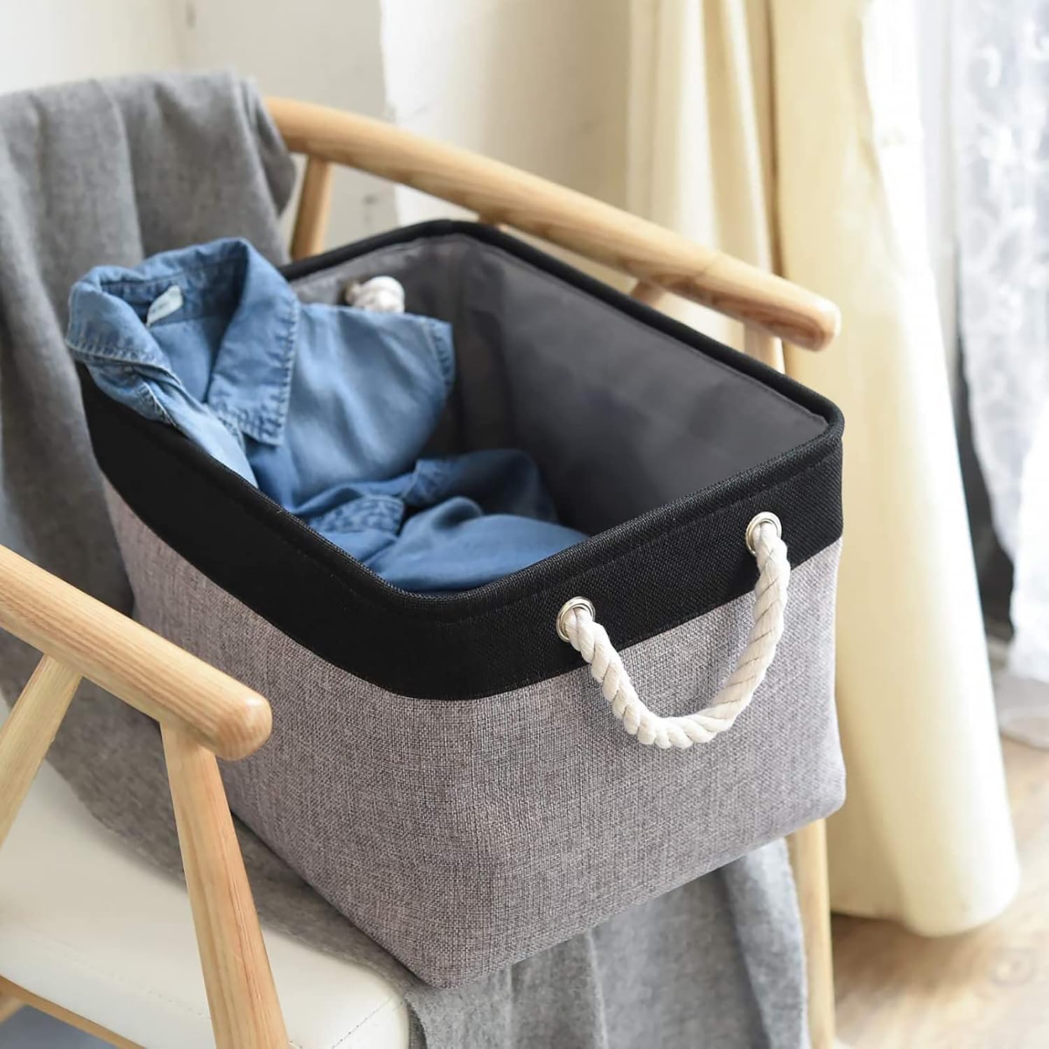 - High quality: The outer material of the storage box is made of imitation linen, with thickened EVA in the middle, refusing to sag, high quality can keep the storage box firm and stylish. The lining is thin cotton, easy to clean, just wipe with a wet sponge or cloth. The handle material is made of cotton and linen handle, wide and not strangled hands.