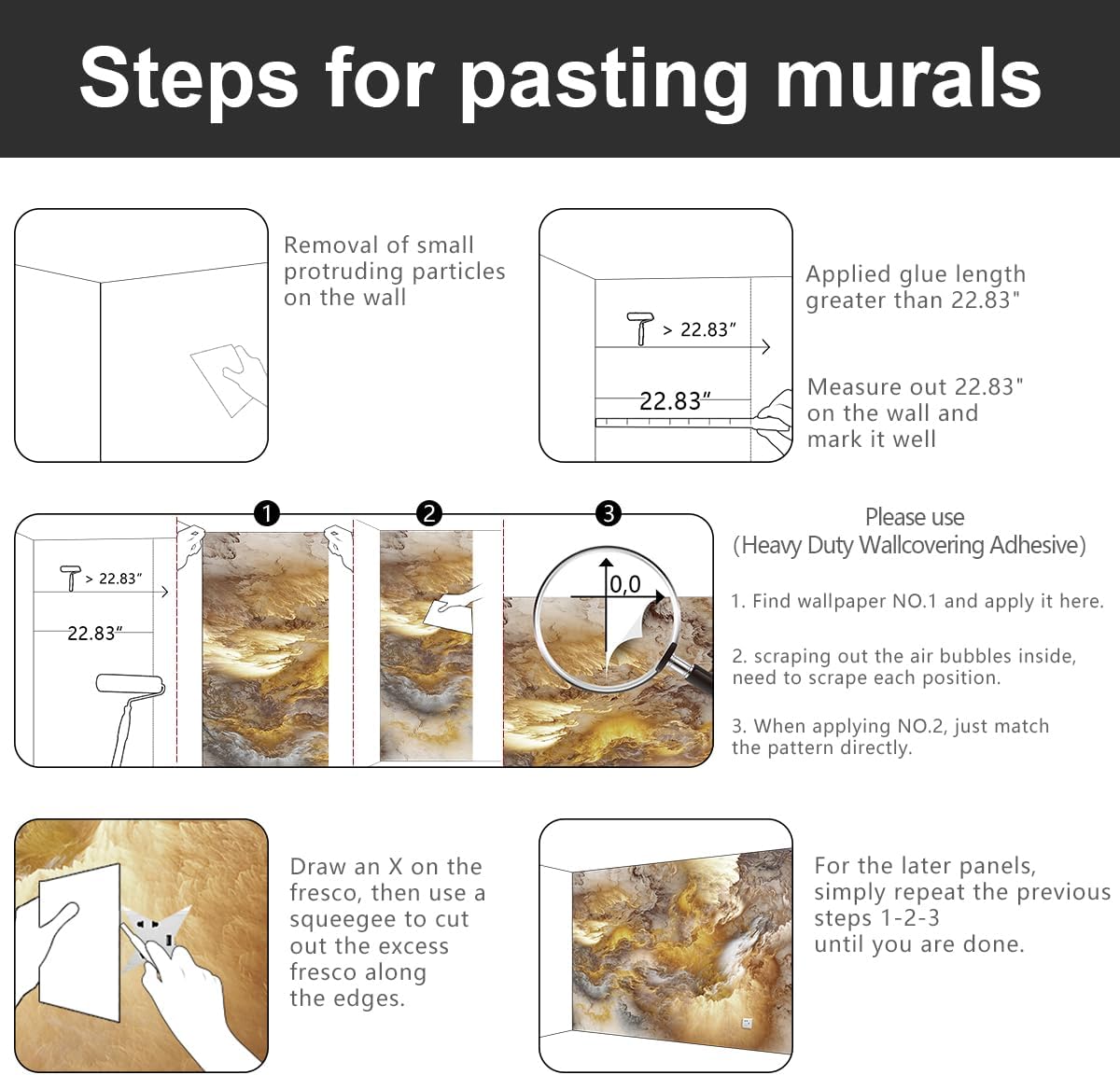 - ⚠️This product is not self-adhesive and peel-off nor is it a wallpaper sticker Installation tools are not included, you will need to purchase your own tools and heavy duty wallpaper adhesive, otherwise it will not work!