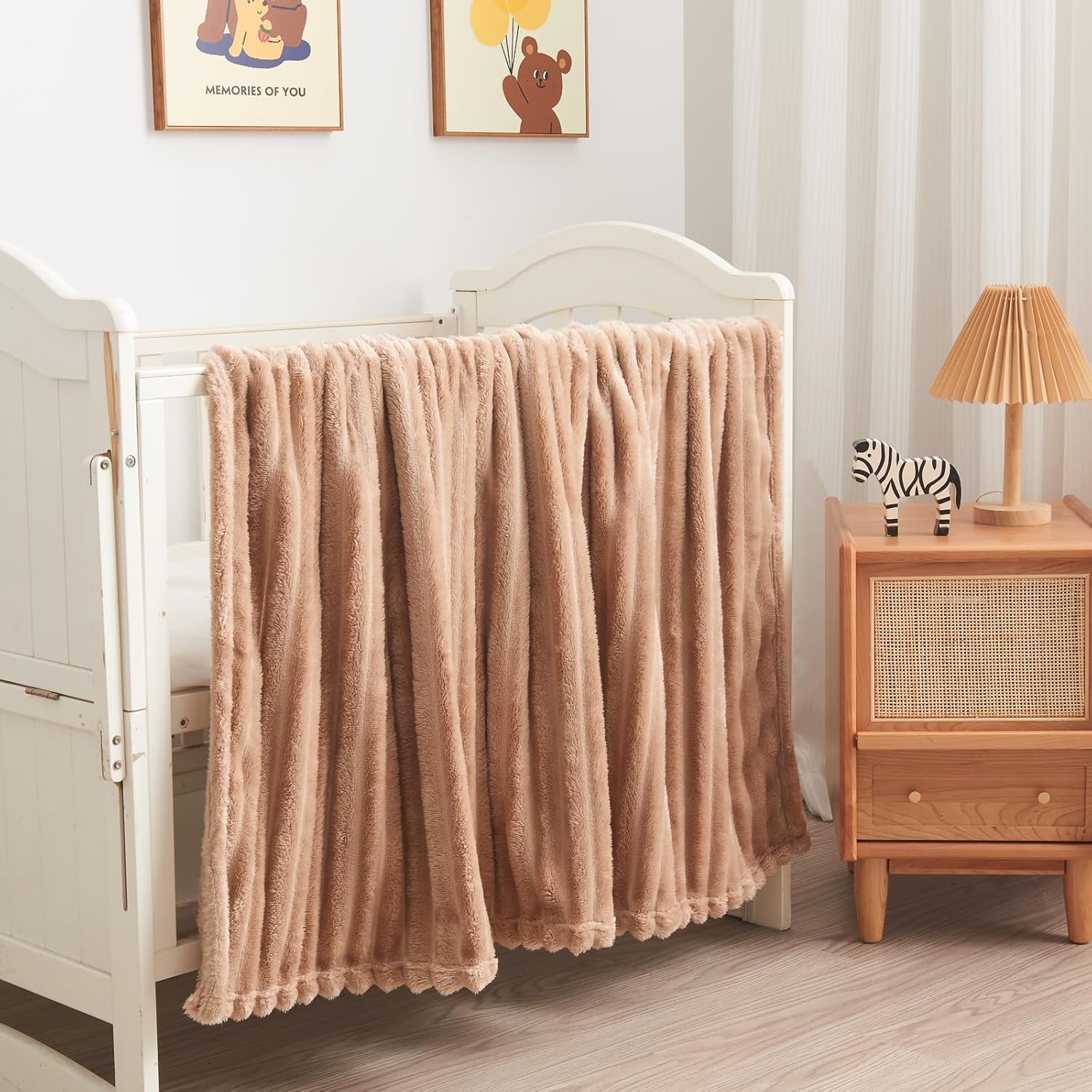 NEWCOSPLAY Super Soft Throw Blanket Taupe Premium Silky Flannel Fleece 3D Ribbed Jacquard Lightweight Bed Blanket All Season Use (Taupe Ribbed, Throw(40"x50"))