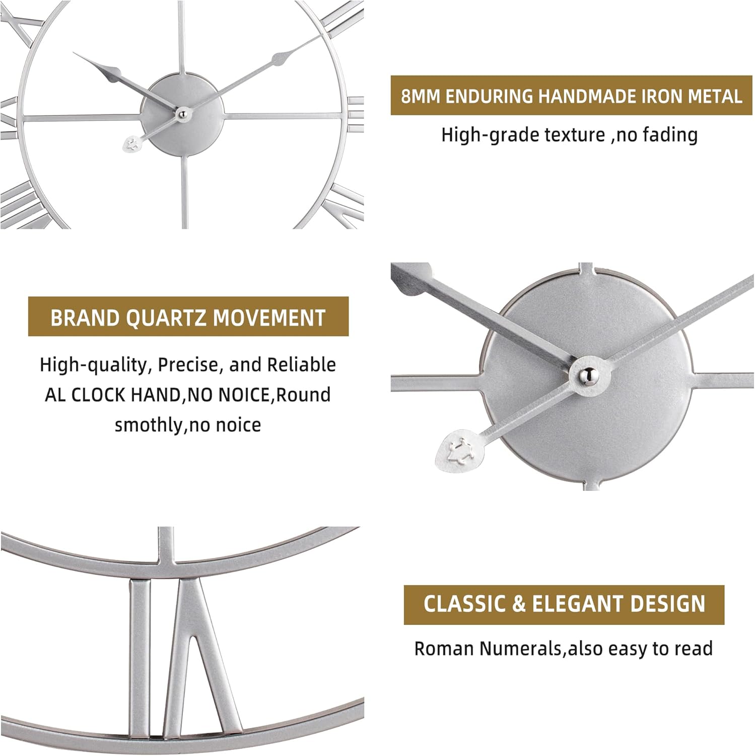 - Built to Last, Easy to Read - Our wall clocks boast exceptional durability with high-quality sweeping movement and resilient paint coating, guarding against moisture and deformation. Enhanced with bold Roman Numerals, they ensure effortless readability from afar, combining longevity with precision