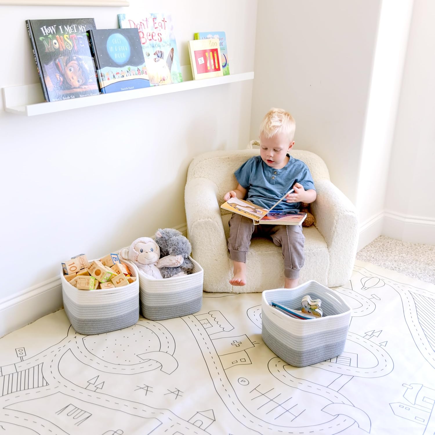 - Safe, Natural Cotton Organizer Bins: Crafted from the highest quality material in the market, our storage bins are oh-so-sturdy (and cute) and ready to take on little humans. They’re 100% safe, so you can rest easy if teething toddlers take a nibble.
